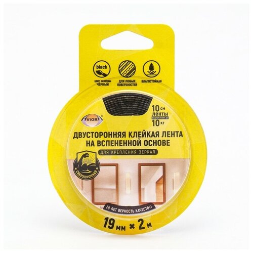 Aviora Двусторонняя клейкая лента на вспененной основе, 19 мм х 10 м, для крепления зеркал, чёрная
