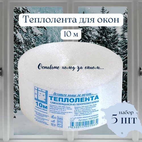 Самоклеющаяся теплолента - уплотнитель, утеплитель для окон , 10 м х 5 см (5 штук), для теплоизоляции, заделывания щелей в оконных рамах