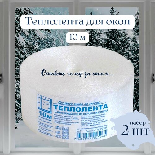 Самоклеящаяся теплолента - уплотнитель, утеплитель для окон, 10 м х 5 см (2 штуки), для теплоизоляции, заделывания щелей в оконных рамах