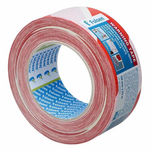 Лента сигнальная Folsen самоклеящаяся 50 мм х 33 м водонепроницаемая красно-белая