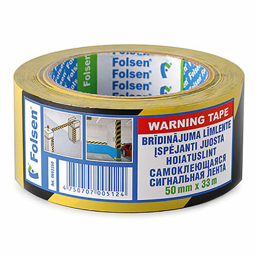 Лента сигнальная Folsen РVC 50 мм х 33 м самоклеющаяся черно-желтая