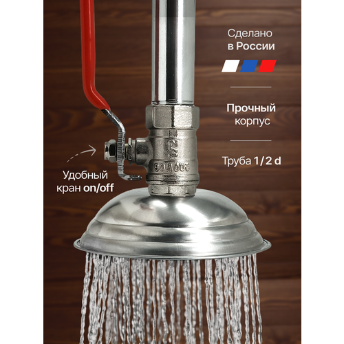 Лейка с краном, для летнего душа, нержавеющая сталь, латунь, 90мм