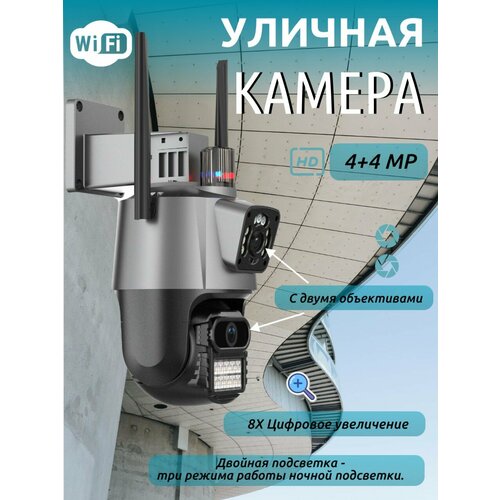 Уличная камера видеонаблюдения wi-fi 4+4МП 8Х зум