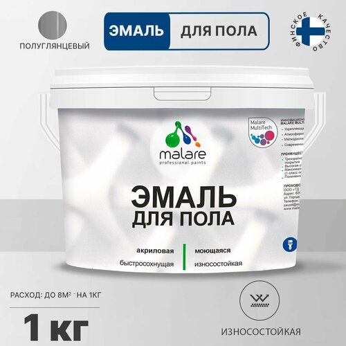Эмаль Malare для пола акриловая, экологичная без запаха, износостойкая, быстросохнущая, моющаяся, полуглянцевая, васаби, 1 кг