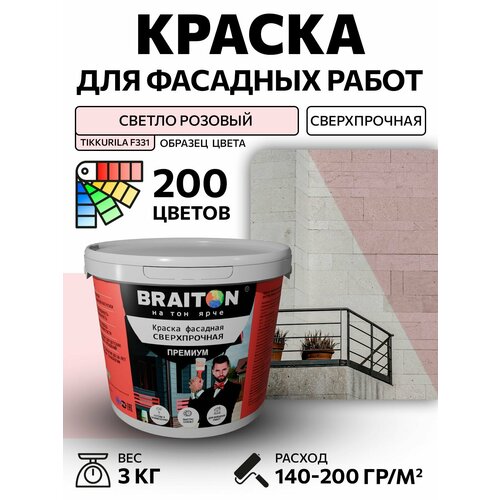 Краска ВД фасадная BRAITON Премиум Сверхпрочная 3 кг. Цвет Светло (Tikkurila F 331)