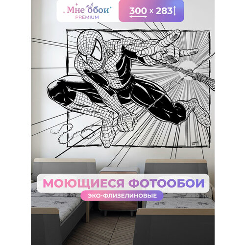 Фотообои детские флизелиновые на стену 3D "Человек-паук комикс" 300х283 (ШхВ), 3д обои в детскую