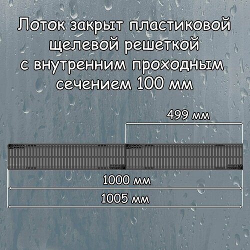 1 штука лоток водоотводный 1000х115х96 мм Gidrolica Light с решеткой пластиковой щелевой DN100 (А15)