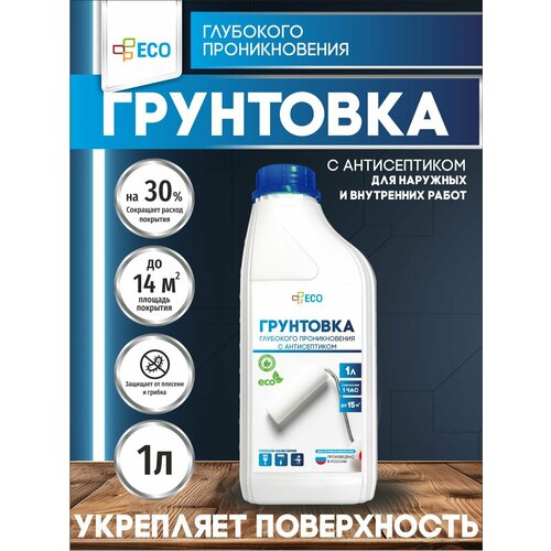 Грунтовка глубокого проникновения ECO с антисептиком для стен и потолков, 1 л