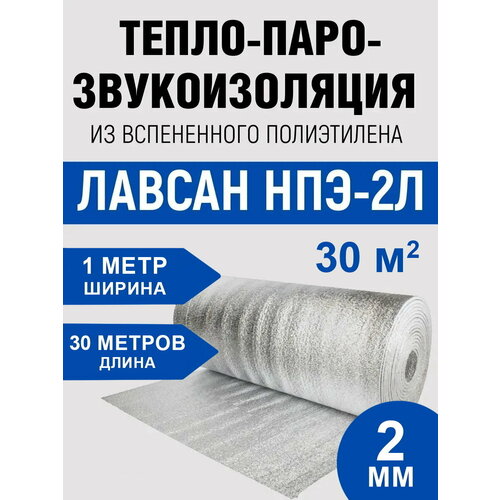 Лавсановая подложка для теплого пола рулон, 2мм х 1м x 30м, 30 кв. метров фольгированный вспененный полиэтилен