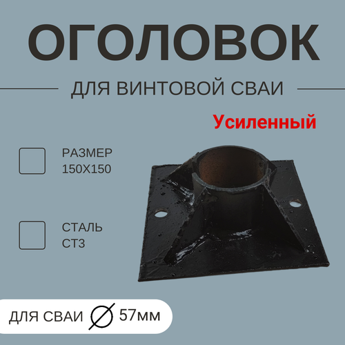 Оголовок для винтовой сваи 57мм (Усиленный) , 150 х 150 , толщина 3мм, (Сталь Ст3)