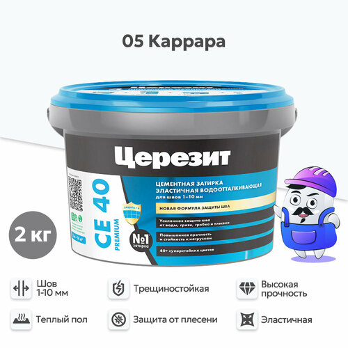 Затирка цементная водоотталкивающая Церезит CE 40 каррара №05, 2 кг