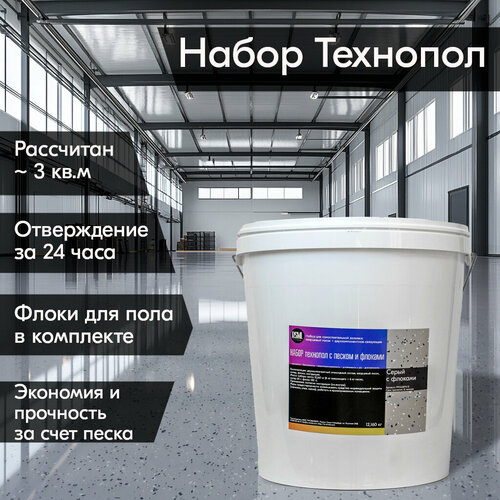 Эпоксидный наливной пол "Технопол" набор с песком и флоками (12,160 кг) серый