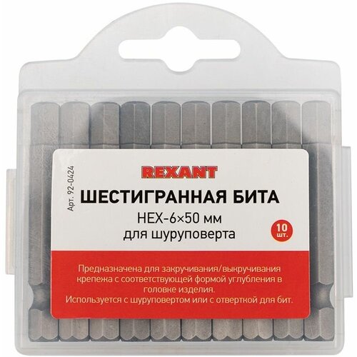 Бита REXANT шестигранная HEX-6 х 50 мм из стали S2 (10 шт.)