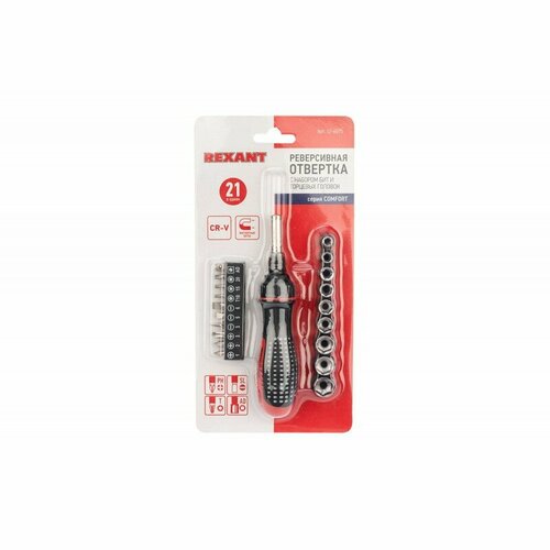 Набор головок и бит с реверсивной отверткой, 21 предмет REXANT