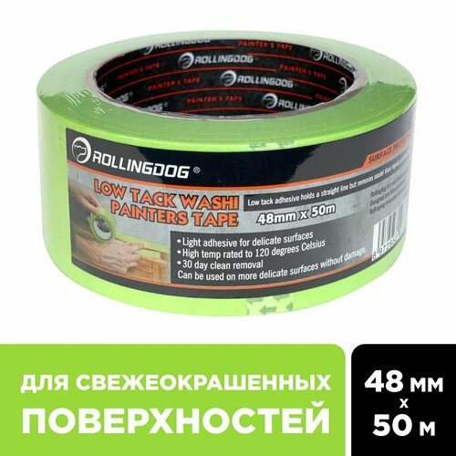 Малярная лента ROLLINGDOG Low Tack Washi Tape, малярный скотч 48 мм. х 50 м, для деликатных поверхностей