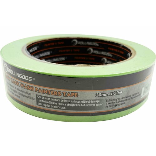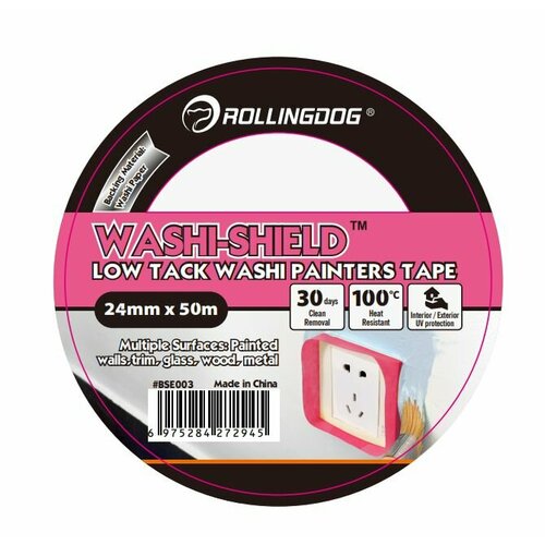 Малярная лента ROLLINGDOG Low Tack Washi, малярный скотч 24 мм. х 50 м, для деликатных поверхностей