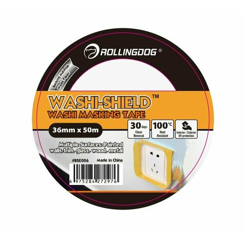 Малярная лента ROLLINGDOG Washi Tape, малярный скотч 36 мм. х 50 м, для четких границ