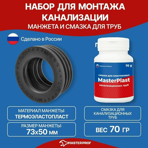 Набор для монтажа пластиковых и канализационных труб, Манжета 73х50 мм черная + Смазка сантехническая 70 гр.