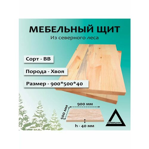 Мебельный щит, хвоя, сорт ВВ, 900x500x40