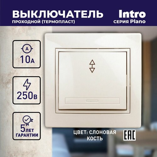 Переключатель Intro Plano 1-103-02 одноклавишный 10А-250В IP20 СУ слоновая кость