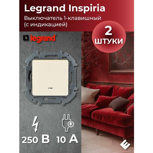 Выключатель одноклавишный с подсветкой 10AX-250В, (Слоновая кость), Legrand INSPIRIA (комплект 2шт)
