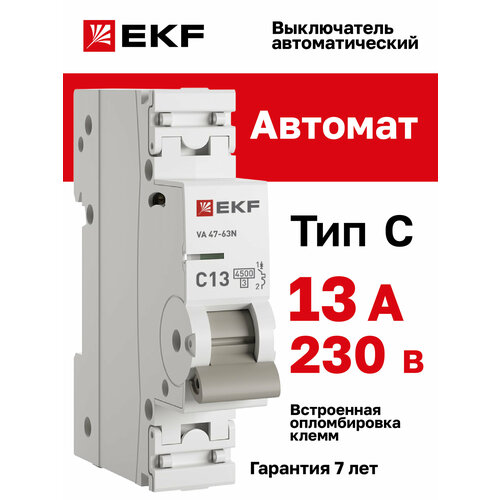 Автоматический выключатель EKF PROxima ВА 47-63N 1P 13А (C) 4,5 кА