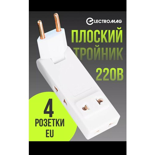 Тройник для розетки плоский поворотный 4 розетки усиленный, разветвитель 180 градусов, переходник