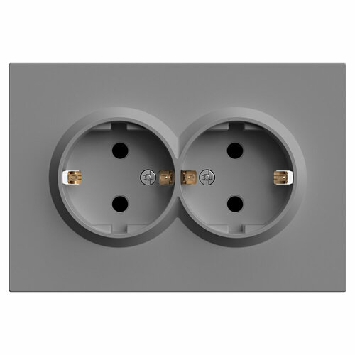 Розетка Эмили 2-местная с защитной шторкой с заземлением, 250В, 16А, RST16-5114-10, платиново-серый