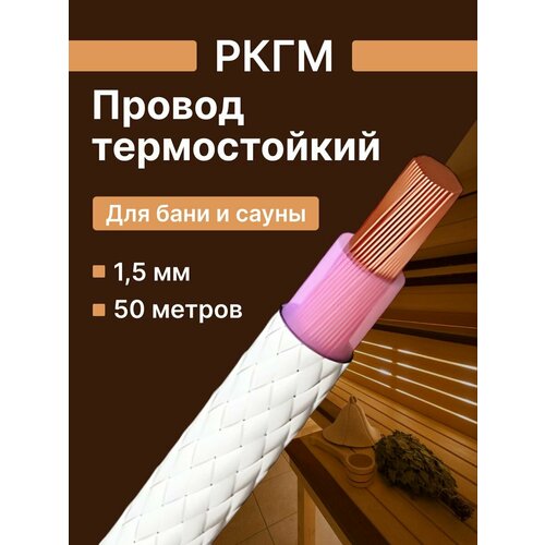 Провод термостойкий для бани и сауны РКГМ 1,5кв. мм ГОСТ - 50 м.