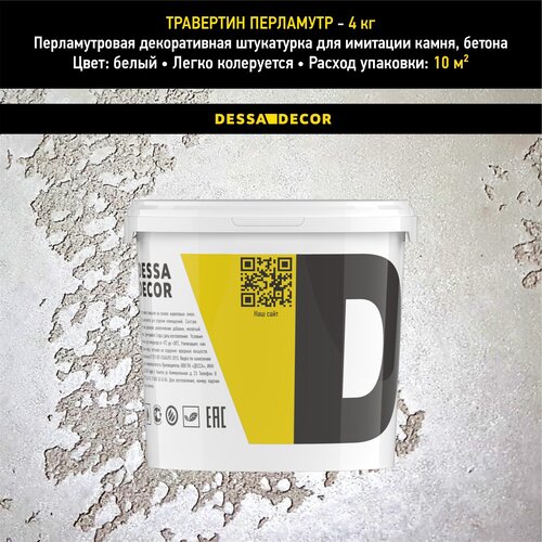 Декоративное покрытие DESSA DECOR "Травертин Перламутр", для имитации бетона и камня на основе белого мрамора, перламутр, 4 кг