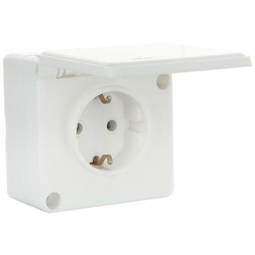 Розетка "Элект" РА 16-005, 16 А, 250 В, одноместная, открытая, с з/к, с крышкой