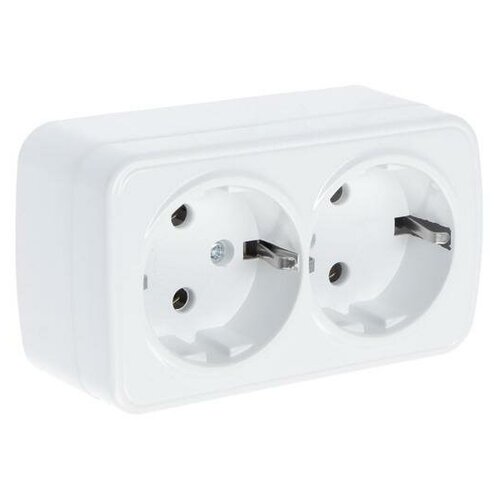 Розетка "Дача" Народная, 2П+3, 16 А, IP20, двухместная, открытая, белый