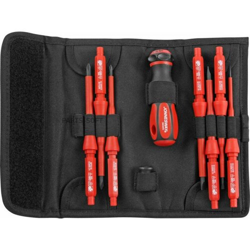 JONNESWAY DV15109S Набор отверток 1000V, диэлектрических со сменными стержнями SL2,5-SL6,5 PH0-PH2, 9пр