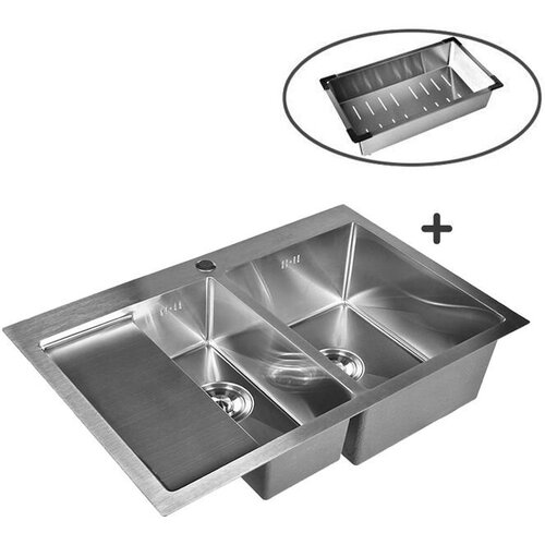 Комплект кухонная мойка из нержавеющей стали WISENT 7851-SL (78х51см) с металлическим коландером.
