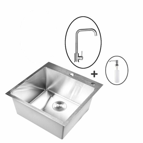 Комплект кухонная мойка из нержавеющей стали WISENT W35050-S (50х50см) с дозатором и смесителем