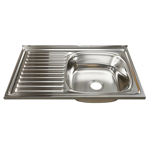 Накладная кухонная мойка 80 см, Mixline 50х80 (0,8) 3 1/2 правая, полированное нержавеющая сталь/глянец