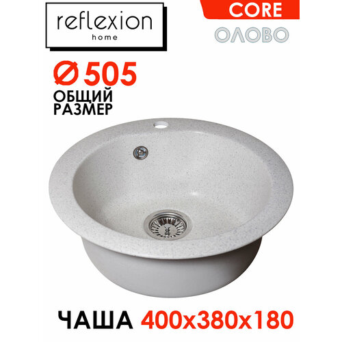 Мойка с сифоном врезная круглая 505х190мм на кухню RX1350TN, цвет олово