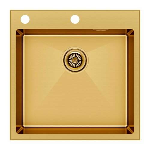 Мойка для кухни врезная из нержавеющей стали Paulmark KRONER-EDGE 51, 510х510 мм, PVD покрытие, 2 отверстия: под смеситель и дозатор, цвет брашированное золото