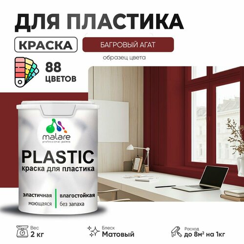 Краска акриловая (АК) Malare PlastiC моющаяся матовая багровый агат 2 кг