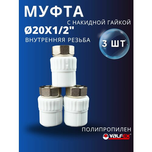 Муфта с накидной гайкой 20х1/2 внутренняя резьба, полипропиленовая PPRC (Valfex) 3шт.