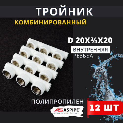 Тройник полипропиленовый 20х3/4 комбинированный, внутренняя резьба PPRC (Aspipe) 12шт.