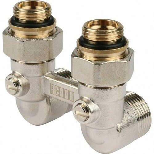 Узел нижнего подключения Rehau 1/2 НР(ш) х 3/4 ЕК НР(ш) с шаровыми кранами и накидными гайками угловой для радиатора (12407371001)