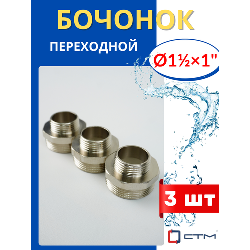 Бочонок (ниппель) латунный 1 1/2х1 переходной (СТМ) 3шт.