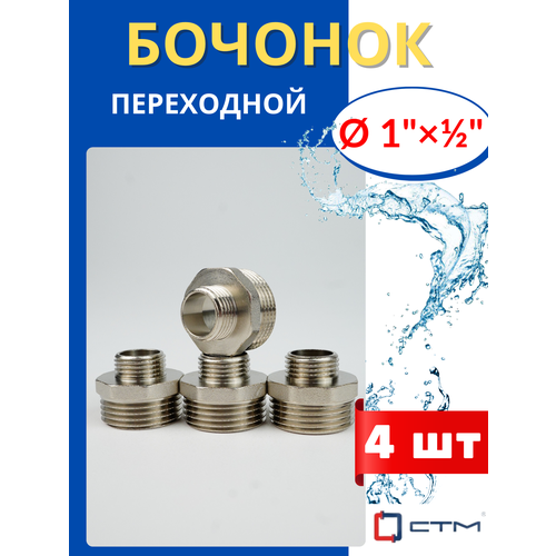 Бочонок (ниппель) латунный 1х1/2 переходной (СТМ) 4шт.