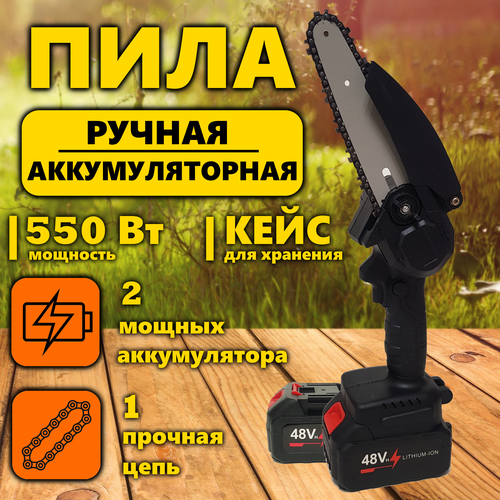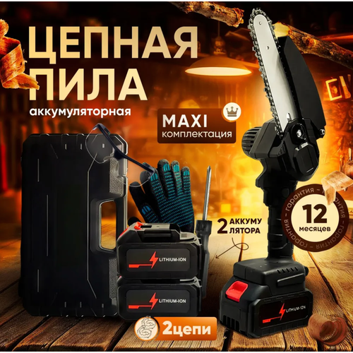 Электропила цепная аккумуляторная 6 дюймов, 18 В, 2 АКБ / мини пила