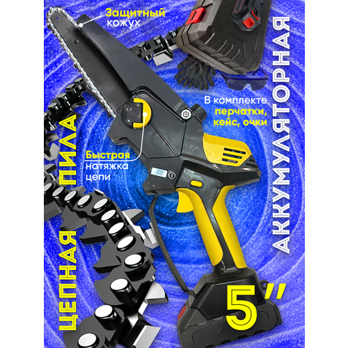 Пила аккумуляторная электрическая ручная цепная, 5 дюймов, черная