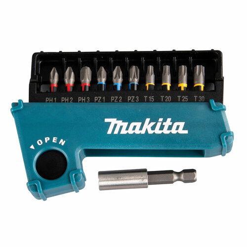 Набор бит Makita, 10 шт, с магнитным держателем и трещоткой, P-79142