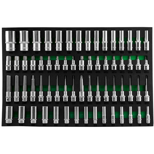 Набор глубоких тоцевых головок 3/8"DR и 1/2"DR, торцевых насадок с вставками 1/2"DR. 66 предметов в S04HD4366SV