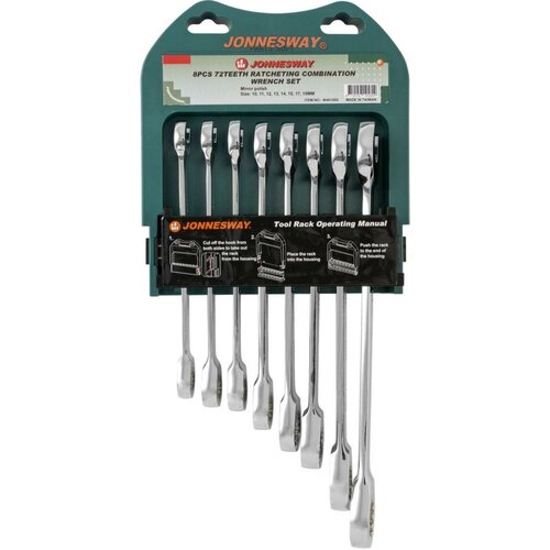 JONNESWAY W45108S Набор ключей комбинированных трещоточных, 10-19 мм, 8 пр