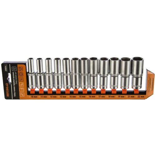 Набор головок шестигранных высоких (12 шт, 1/2", 10-22 мм) АвтоDело 39854 (20923)